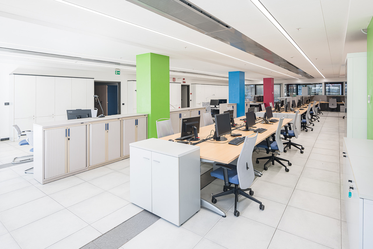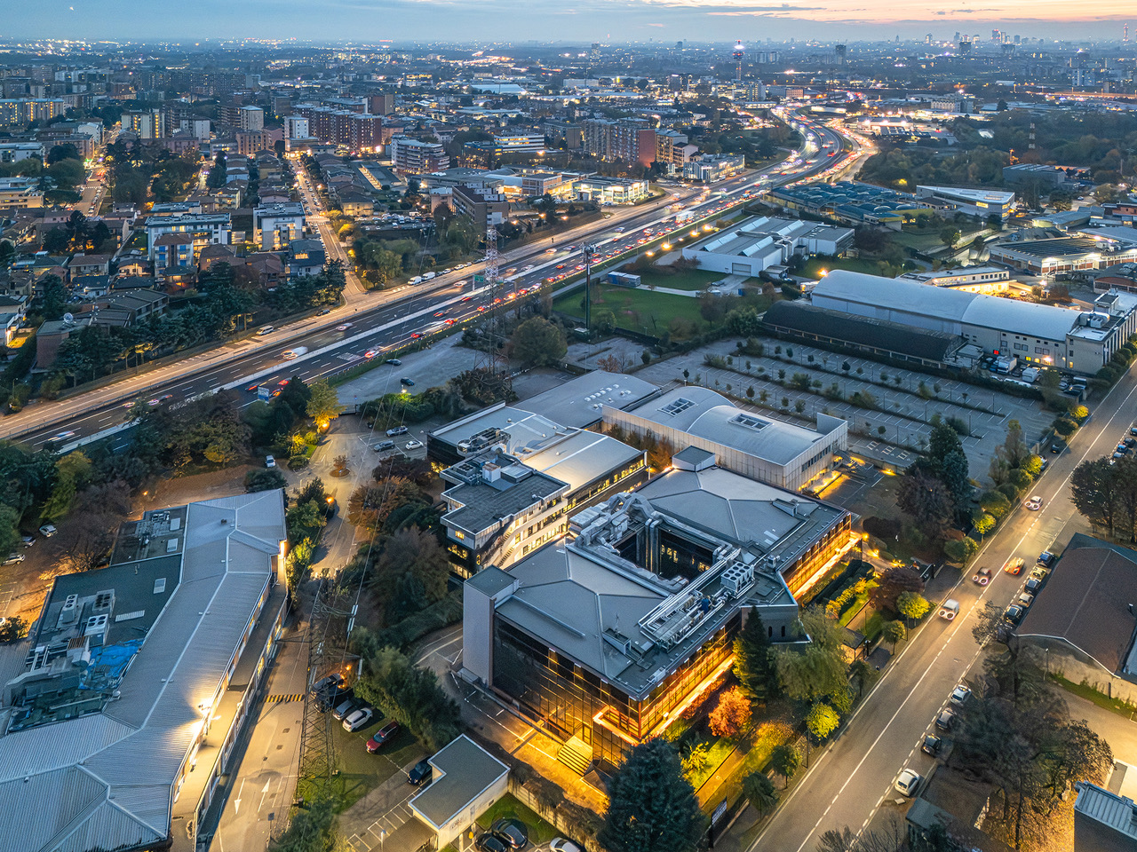 Il Centro Direzionale offre una superficie totale di oltre 8.500 mq, suddivisa in tre edifici. L'Edificio A comprende 4.710 mq destinati a uffici, sale riunioni, un'area ristorante con cucina interna, sala fitness e palestra. L'Edificio B dispone di 3.112 mq per uffici, sale meeting e congressi, laboratori, archivio e un ampio parcheggio coperto. L'Edificio C è un magazzino/archivio di 752 mq con un grande garage riservato ai dirigenti. Inoltre, il complesso vanta un ampio cortile con oltre 100 posti auto riservati e numerati, e un grande giardino.