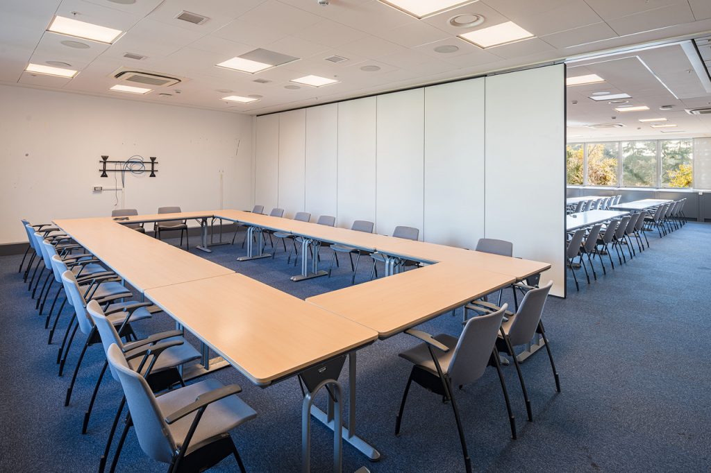• Configurazione delle Sale: Sono presenti 4 sale per conferenze e corsi, dotate di una reception dedicata. Due sale sono di medie dimensioni e due di grandi dimensioni.